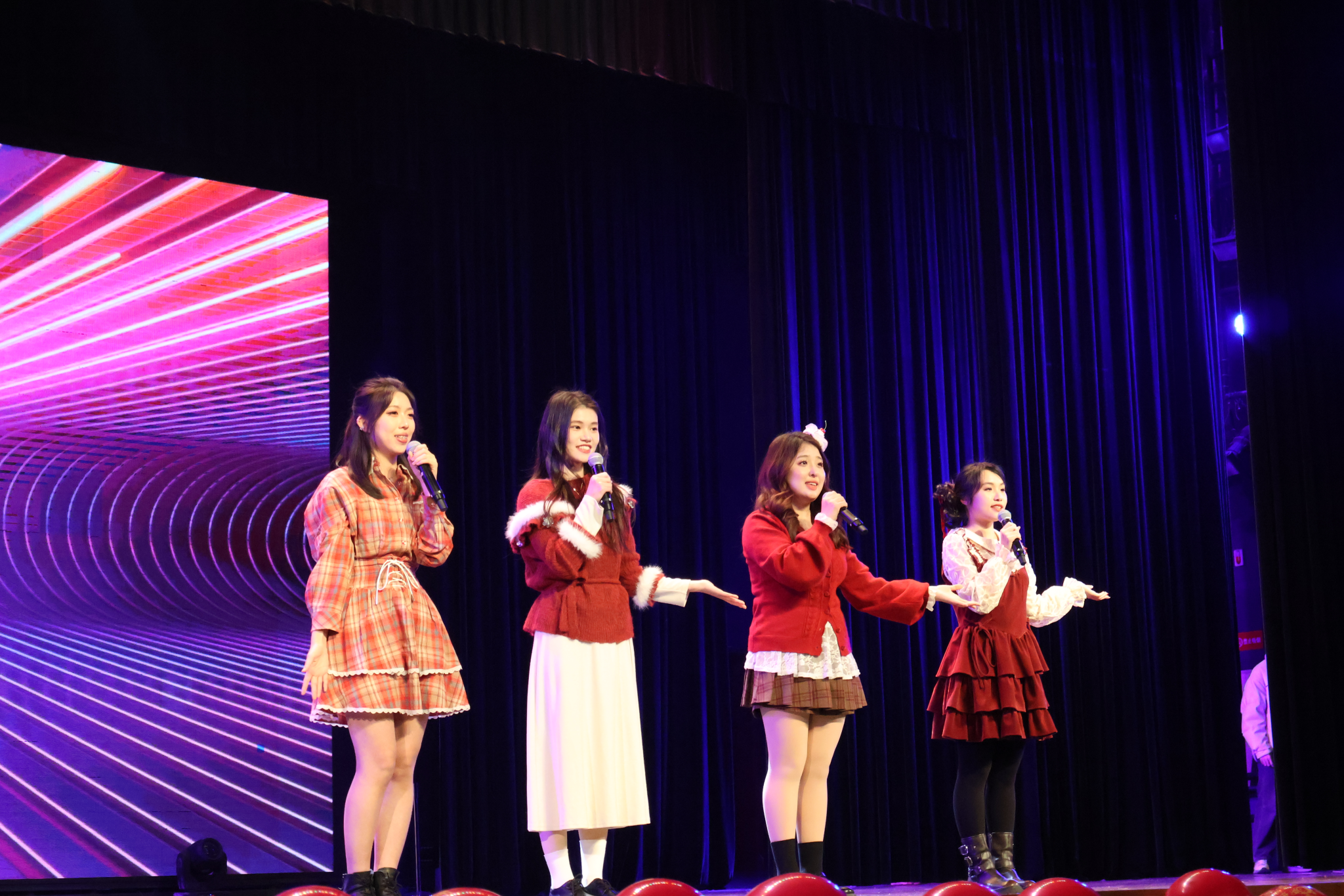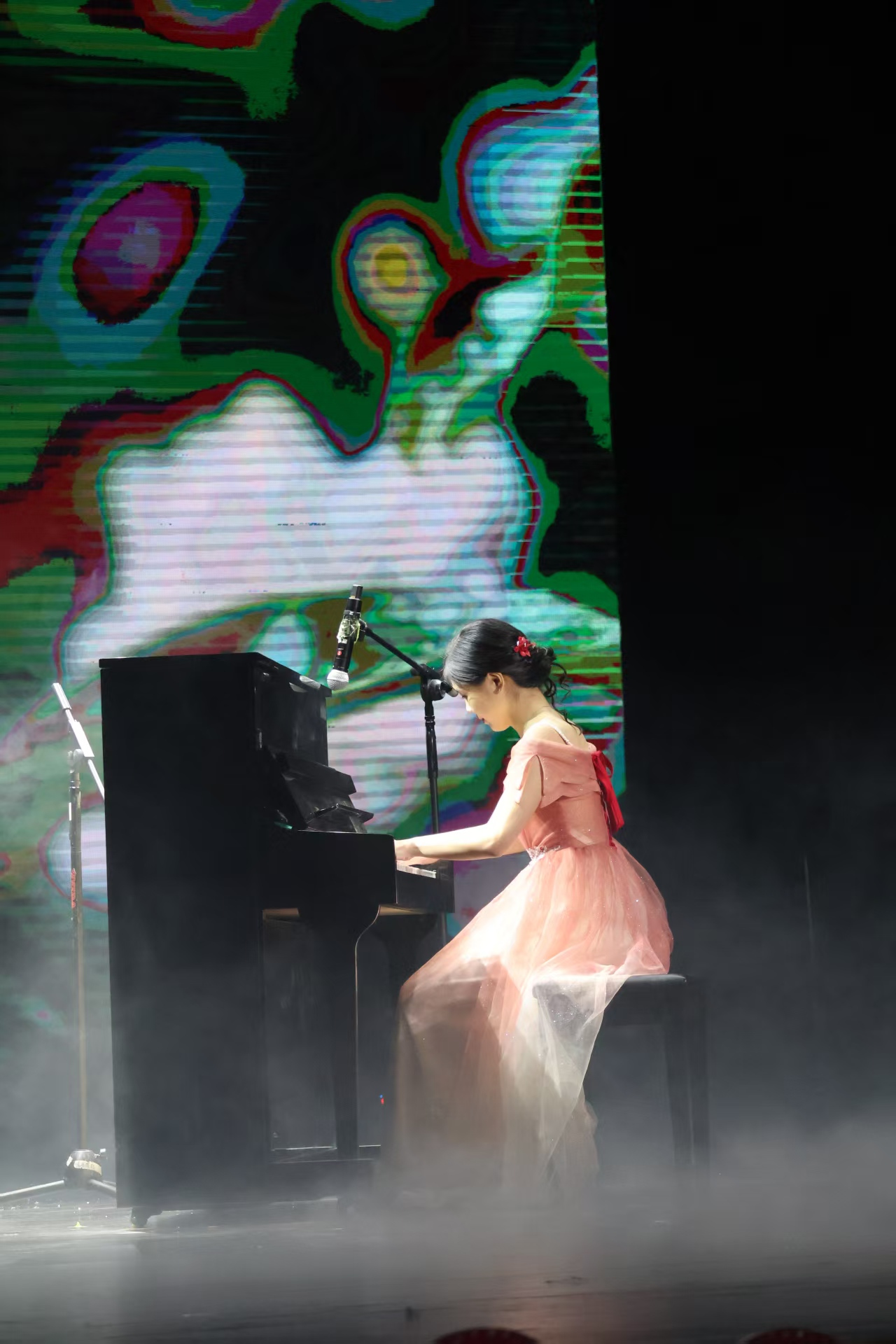 随后,合唱《Who Says》,以坚定旋律唱响勇气与自我的成长宣言;配音表演《研究生版・甄嬛传》,将学术生活与经典IP巧妙结合,以创意改编引发全场共鸣;李凯老师倾情献唱的《心的祈祷》,用真挚歌声传递师生情谊与新年祝福;钢琴演奏《黄河韵・茉莉香》,以黑白琴键奏响山河壮阔与文化深情,刚柔并济的演绎令人沉醉。