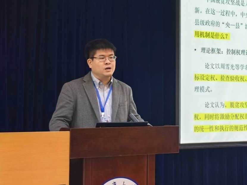 臧雷振老师对香港教育大学社会科学及政策研究学系李亚琳、肖汉宇合作的论文《“央—县”治理:一个控制权理论——基于中国脱贫攻坚缩小城乡收入差距的实证分析》进行了介绍与点评。文章以脱贫攻坚为案例,结合控制权理论视角和中央政府政策执行能力建设框架构建了“控制权—政府政策执行能力建设”分析框架,采用混合研究方法检验“央—县”治理对县域治理效果的影响与机制。研究发现“央—县”治理缩小了县域城乡收入比,党龄越长的县委书记所在“央—县”治理县缩小县域城乡收入比的效果越好。臧老师指出,文章可以对控制权理论进行必要的拓展和修正,明确说明在“央-县”治理情境下,省市级政府的角色变化,以及县级政府如何从“管理方”转变为直接的“代理方”,并分析这种层级跳跃对控制权分配的具体影响。其次,尽管文章采用了双重差分法(DID)并通过了平行趋势检验,但T检验显示处理组与对照组在多个变量上存在显著差异,尚不能排除两组对政策的响应方式本身存在差异,即可能存在交互效应的异质性。最后,文章对“央-县”治理的操作化测量过于简化,未能充分考虑政策工具的异质性。李亚琳作者就这些问题进行回复,与会专家和作者还就文章的修改进行了讨论。